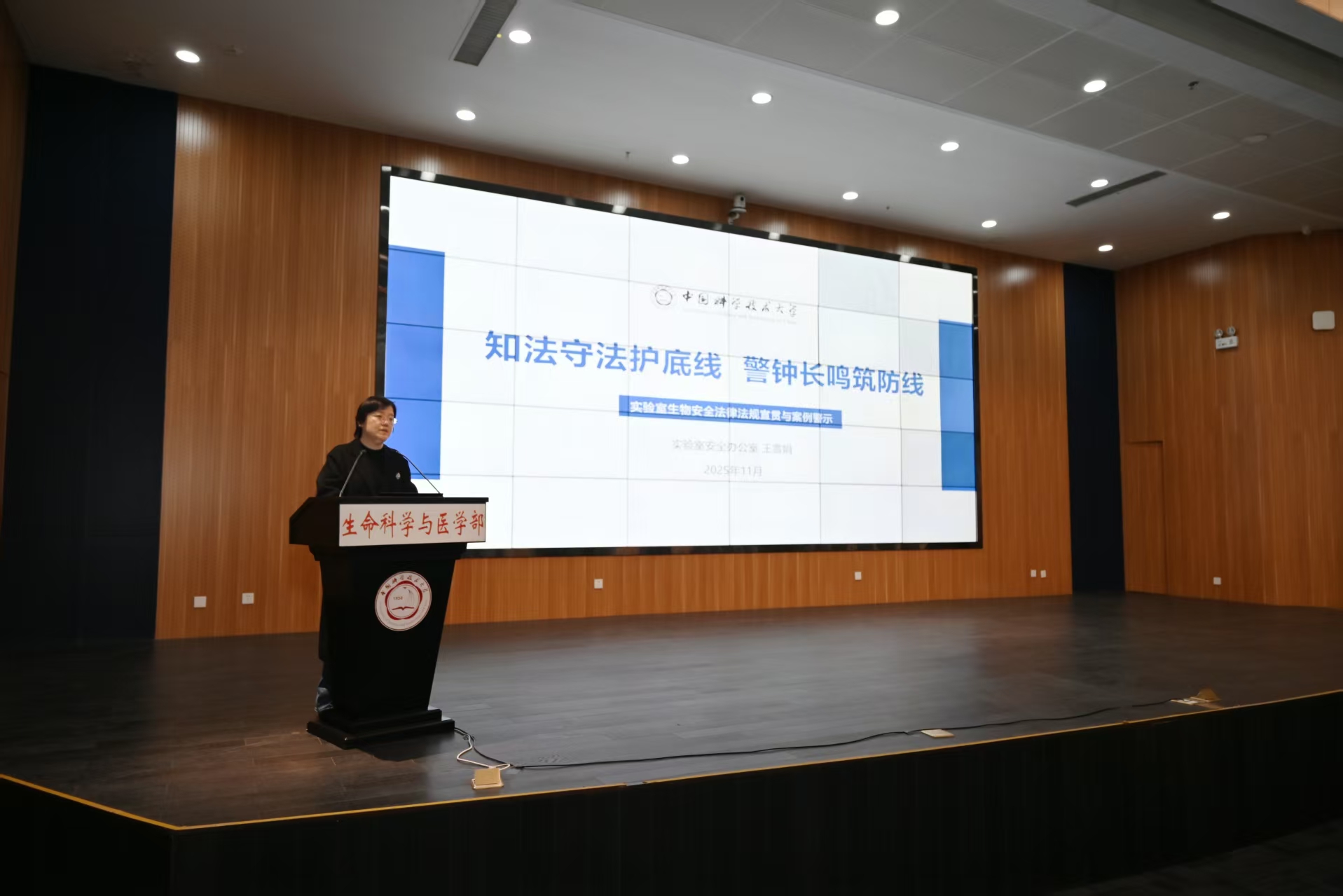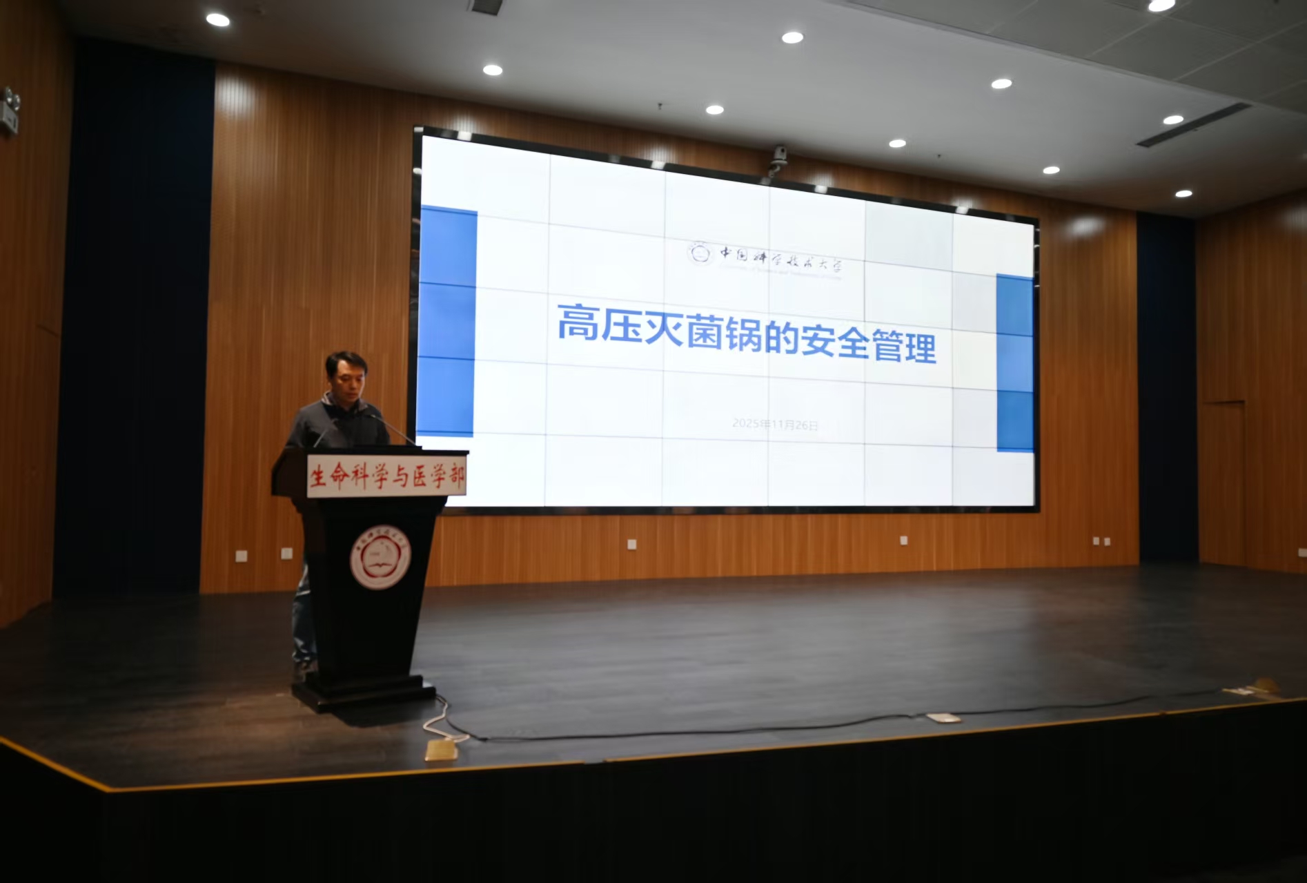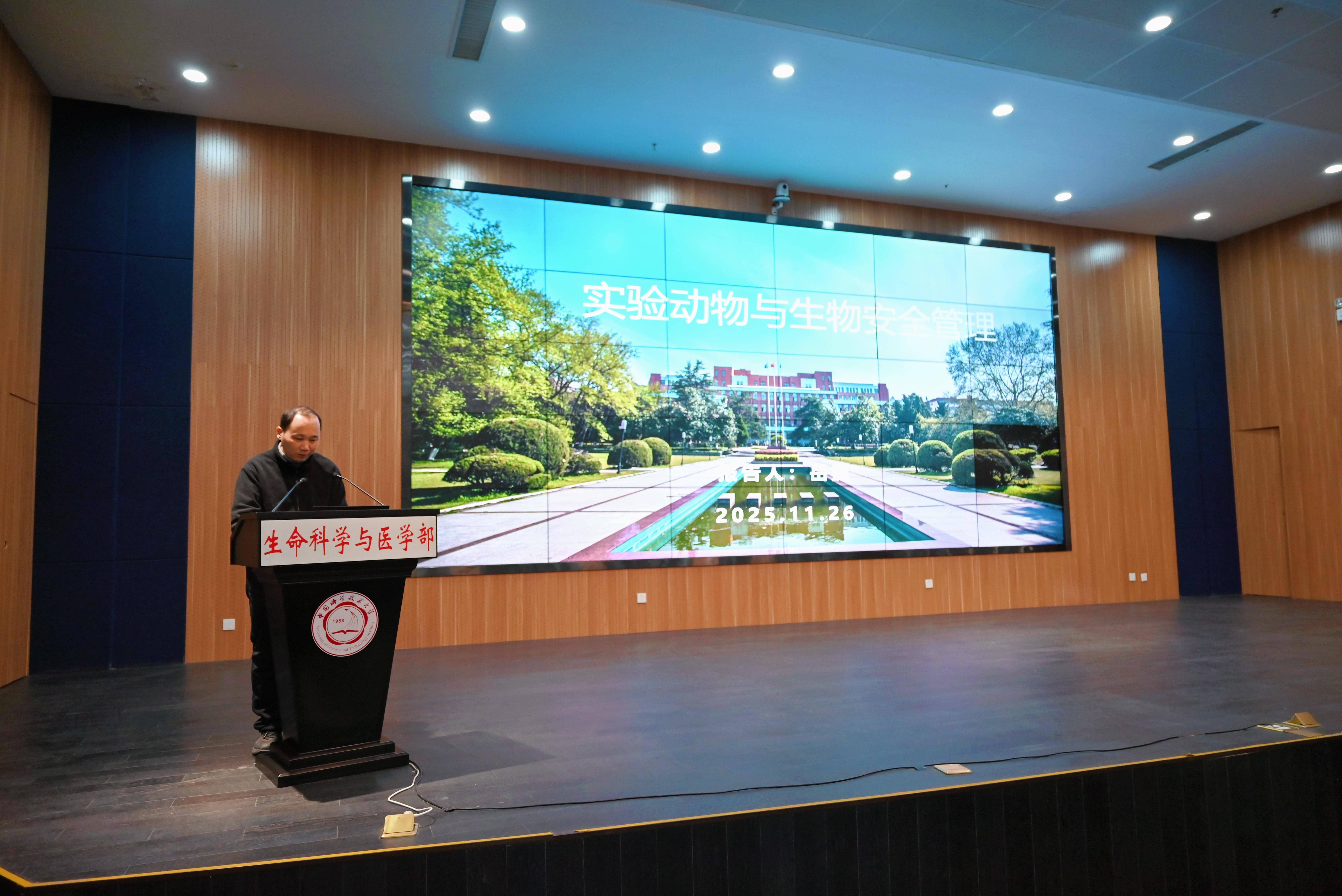 为深入贯彻落实《中华人民共和国生物安全法》等有关要求,进一步提升实验室生物安全管理水平与风险防控能力,11月26日,实验室安全办公室在生命科学大楼一楼报告厅组织开展2025年度实验室安全员专项培训(第八期 生物类)暨“实验室安全直通车”活动。生命科学与医学部、化学与材料科学学院、火灾安全全国重点实验室、物理学院、信息科学技术学院等二级单位院级安全员、实验室安全员代表等160余人参加会议,实验室安全办公室主任赵钢主持会议。